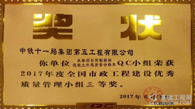 2017年中国市政工程协会QC成果三等奖