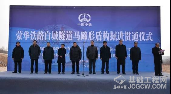 蒙西华中铁路股份有限公司副总经理袁良书,蒙华公司蒙陕指挥部指挥长韩跃,中国中铁股份公司科技信息部部长于兴义,榆林市政府副秘书长高光耀,榆林市铁路办副主任郭明,中国中铁四局集团党委书记、董事长张河川,中国中铁高新工业股份公司党委副书记、总经理李建斌,中铁装备党委副书记、纪委书记、工会主席卜照华等领导出席贯通仪式。