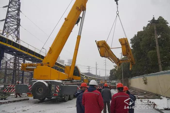 1月27日下午13时28分,随着一声清脆的哨响,公司厂西管廊隐患治理项目跨桥桁架缓缓地坐落到预定位置,吊装一次成功标志着厂西管廊整治迈向了新台阶。 跨0#路桥桁架(桁架35XHJ-73~74),长约40米,重达65.6吨,横跨炼西路桥,是区域施工中最大的一副桁架。该桥为职工通勤必经之路,施工受交通影响很大,故采用整体吊装的施工方法。由于现场施工区域在管廊东侧35#路和管廊西侧炼西路预制场,在道路与管廊间高压架空电缆等障碍物多,安装吊装难度大,这也给施工技术控制和施工安全控制带来了许多难题。