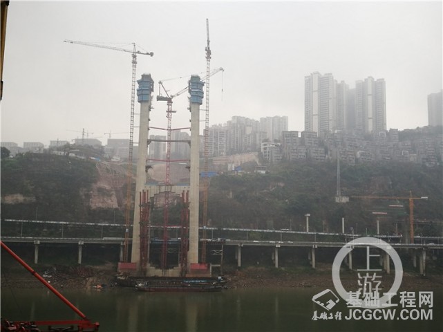 邢惟东介绍,跨江大桥的主桥长度约为732.8米,主跨达375米;两座桥塔“一高一低”,高塔总高度为202米,低塔总高度为150.75米;高塔设有14对斜拉索,低塔有7对斜拉索。“大桥的P3塔是重庆城区最高的桥塔,天气好的时候,站在塔顶都可以看到财富中心呢。”