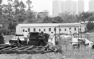 3月20日上午,塘厦镇林村社区林电路旁的工地上,赣深客专塘厦站高架桥正在打地基。