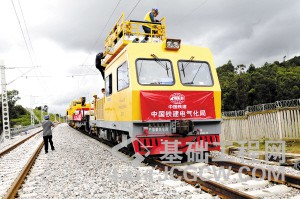 ▲图为楚大铁路正在进行接触网施工