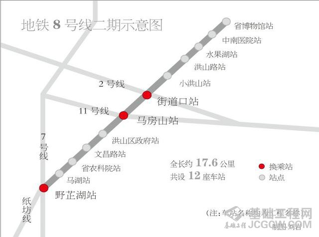 据了解,目前8号线二期工程的马湖站和小洪山站也进入了主体结构施工阶段,其余各站仍在进行围护结构施工。根据武汉地铁集团官方网站信息,8号线二期共有3座换乘站,可分别换乘2号线、11号线、7号线和纸坊线。