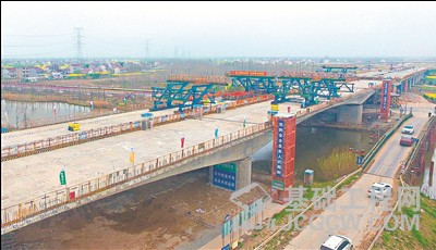 海启高速是创建省级品质示范工程项目,汇吕线特大桥,位于启东市境内,上跨规划的三和港三级航道和吕北一级公路,桥梁全长1033.4米,主桥上部结构形式为悬臂浇筑预应力混凝土连续箱梁,下部结构采用实体桥墩,群桩基础,于2016年11月4日开工建设,去年8月25日完成箱梁架设。