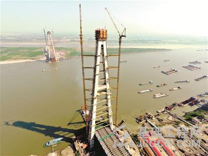 武汉青山长江大桥南塔封顶 破世界A形塔高度纪录
