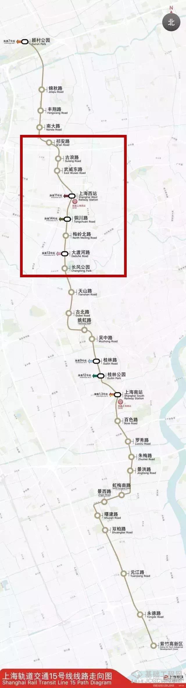 上海轨道交通15号线途经宝山区、普陀区、长宁区、徐汇区、闵行区5个行政区,共30座车站,全长约42.3公里,均为地下站,据了解上海轨交15号线有望2020年12月开通运营。