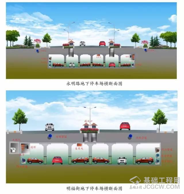 记者从住建部门了解到,明福街和永明路项目为地下停车场及综合管廊项目,项目的主要建筑功能包括3部分:地下停车场、地下综合管廊、地下人行通道。