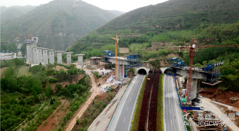 蒙华铁路是世界上一次建成最长的重载煤运铁路,也是"北煤南运"新的国家战略运输通道。北起内蒙古浩勒报吉站,终点至江西省吉安市,线路全长1837公里,规划设计输送能力为2亿吨/年。中铁七局郑州公司承建的蒙华铁路14标四分部位于河南省灵宝市境内,线路全长10.392公里,其中路基15段,桥梁17座,涵洞2座,隧道12座,轨道10.392公里。该项目桥隧占线路总长的87%,路桥隧均位于陡峭沟谷,结构物短且工点分散,场地布置及便道修建、材料运输困难,“短路、短桥、短隧”等46个结构物,单位工程短小、分散,难以形成连续施工作业面,施工条件差,施工组织难度大。去年,该项目还获得了《适于隧道台阶法施工中拱架喷射混凝土用隔板》国家实用新型专利。图为灞底河特大桥跨三淅高速连续梁正在施工。