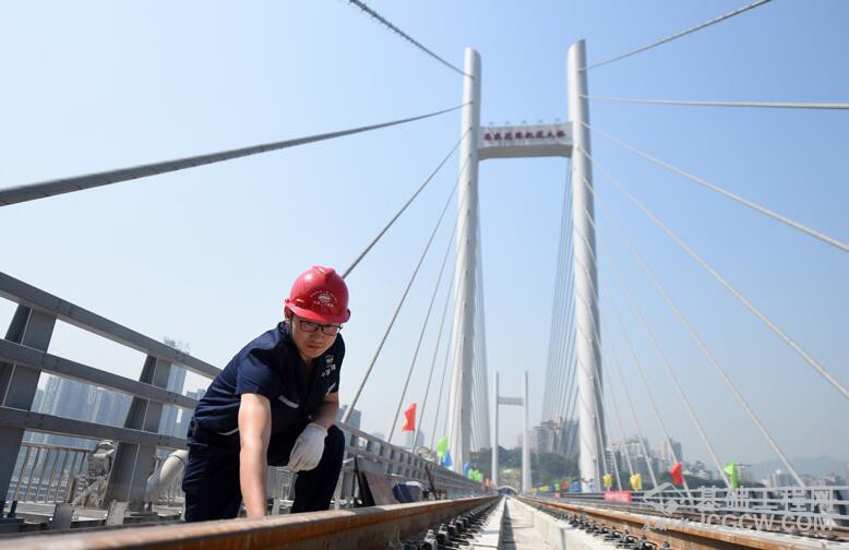 4月18日,工程人员在重庆高家花园轨道专用桥进行例行检查。