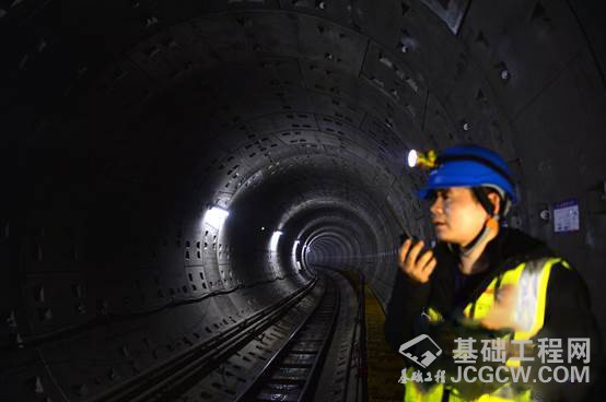 4月23日上午,石家庄地铁1号线二期工程东庄站-会展中心站盾构区间右线隧道开始下穿滹沱河。图为施工人员在隧道内通过对讲机指挥施工。