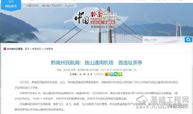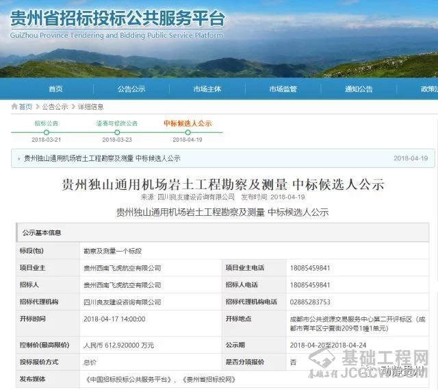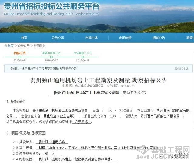 4 月 19 日,贵州省招标投标公共服务平台发布贵州独山通用机场岩土工程勘察及测量中标候选人公示,这意味着独山通用机场建设正稳步推进。