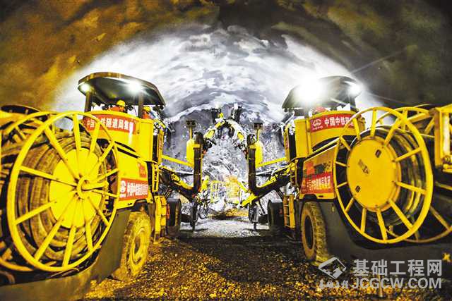 据介绍,在隧道断面内,洞内可同时容纳两台三臂凿岩台车施工,最快时一天可掘进约9米。相比人工开挖作业,既安全又高效。