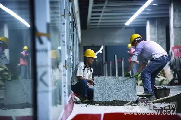 施工人员在喷水池站站厅安装地板