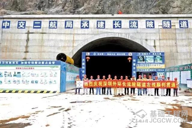 外环项目深圳段共有4座隧道,继红花岭隧道后,长流陂隧道成为第2条顺利贯通的隧道,该隧道左线长约602米。