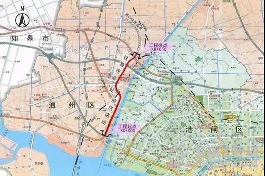 铁路西站站前快速路(含双Y立交)工程项目位于南通通州区,南起于长江路西延,北止于新G204,路线总长约8050米,宽50米。