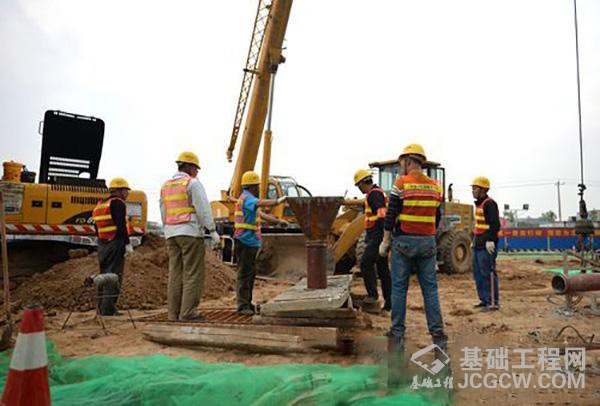 核心提示: 5月10日,在河北省会石家庄太行大街与规划金沙江路交叉口,石家庄地铁3号线二期工程韩通站施工人员开始进行基础打桩作业。以