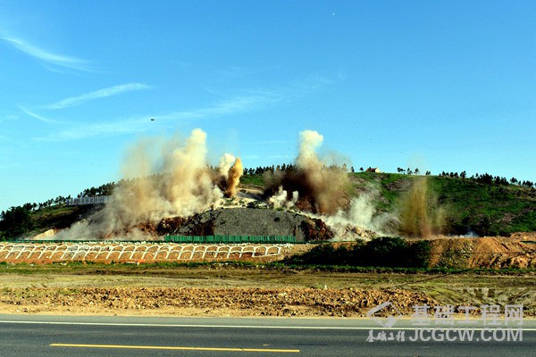 据施工现场项目技术总工程师孙维龙介绍:此次山体爆破施工采用排间延时微差松动爆破,爆堆向山体两侧沿高速公路方向分布形成,以减少爆体散落路面上。为了保证施工安全,指挥组、爆破组、警戒组、封道组、清障组均按布控方案组织执行到位,此前还专门进行了突发事件应急演练,确保了爆破作业安全、有序、并按(封道)时间完成。