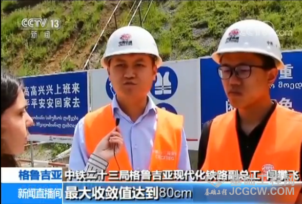 中铁二十三局格鲁吉亚现代化铁路项目副总工程师 闫攀飞:长达3500米的围岩属于强风化的泥灰岩,节理裂隙发育,岩体破碎,水平收敛大,最大收敛值达到80cm,并且含有甲烷气体,局部段落出现过大股涌水和瓦斯气体燃烧现象。我们通过“短进尺、弱爆破、勤测量、早封闭”的施工原则,及时优化施工方案,安全地通过了围岩破碎段。
