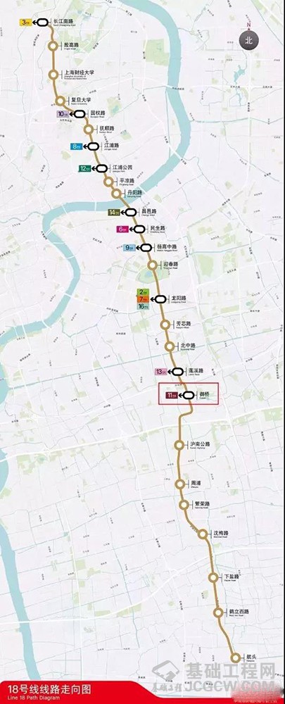 轨道交通18号线全长约36.8公里,设车站26座,全部为地下线,是一条横贯上海内环东侧南北向的线路,沿线经过宝山、杨浦、浦东等3个区。详见↓