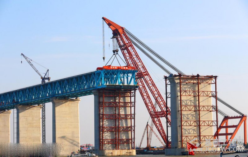 世界跨度最大公铁两用斜拉桥沪通长江大桥首个超千吨大节段钢梁架设成功