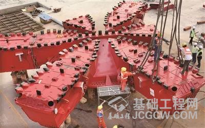 核心提示:工人们正在拼装盾构机刀盘。 在完成夹江隧道明挖段基坑开挖工程后,正在建设中的南京长江五桥即将迎来盾构施工阶段。记者昨日