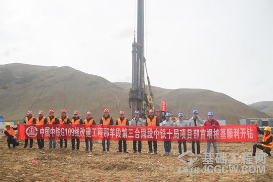 中铁十局二公司西藏国道109项目部首根桩基顺利开钻
