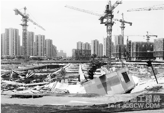 联鸿街为双向四车道,巨大的裂缝出现在道路的南面,基本上三分之一的路面都有裂痕,路面断裂成了三个层次,最深塌陷位置有两三米深。原先工地大门口的简易门房呈现45度角的倾斜,“云和湖”工地已经停工,部分基坑的部分支架有损伤和断裂,一辆黄色的挖车掉落在基坑里。