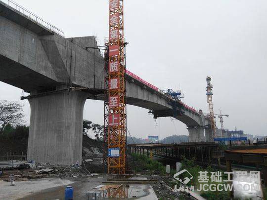 由于该连续梁上跨成自泸高速公路,该公路车流量大,施工过程中如何做到100%不对桥下交通流造成干扰,确保过往车辆行驶安全,成为施工一大难题。施工方通过多种措施,保证了工程的进展,确保了该连续梁顺利合龙。