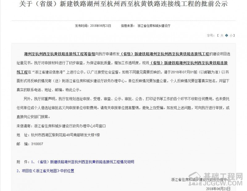 核心提示: 日前,《关于(省级)新建铁路湖州至杭州西至杭黄铁路连接线工程的批前公示》正在浙江省建设厅网站进行公示,透露了线路站点