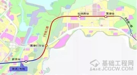深圳地铁2号线东延段,也就是2号线三期工程,于2016年5月正式开工,预计于2020年底开通。2号线东延段西起2号线起点新秀站,终于莲塘站,线路长3.8公里,全程地下敷设,设置车站3座。三期开通运营后,区间将延长至赤湾站到盐田路站,沿途经过莲塘片区、沙头角片区、盐田片区和梅沙片区。