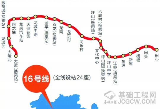 16号线主要惠及龙岗、坪山区域,线路全长29 .2公里,设站24座。最高设计速度80km/h。线路起于龙岗区3号线大运站西侧,止于坪山区田心站,由西向东穿过龙岗、坪山,连接荷坳、大运新城、爱联、龙城公园、龙岗中心城、宝龙东片区、坪山中心城区、坪山老城区、坪环等片区,建成后带动区域交通循环,大大缓解交通压力,方便龙岗和坪山市民,实现龙岗中心城与坪山区之间的快速联系。