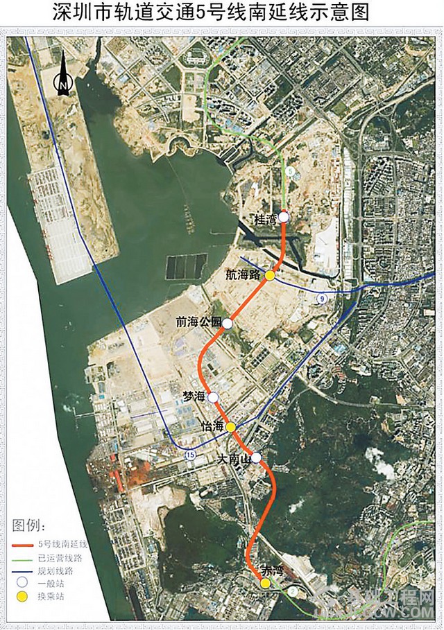 深圳地铁5号线南延线工程是深圳地铁三期工程二阶段的重要组成部分。线路自北向南贯穿前海,线路全长约7.65公里,包括前桂区间、前前区间、妈前区间、荔铁区间四个盾构区间,共设车站7座,均为地下站。