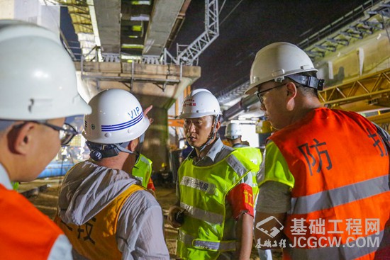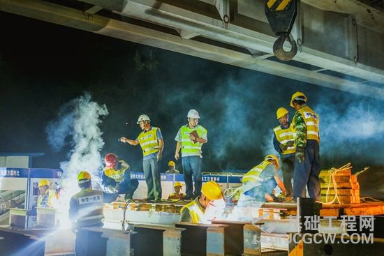 记者了解到,本次施工现场有近500名工人,施工地段临近铁路营业线最近的一处仅有18公分,施工过程不能逾越营业线,在17日晚22:40至次日凌晨3:40点争取了300分钟要点施工,避开火车通行。