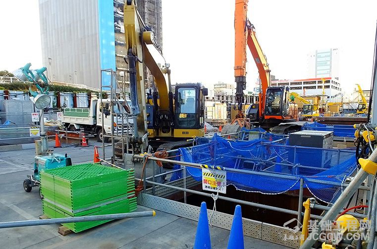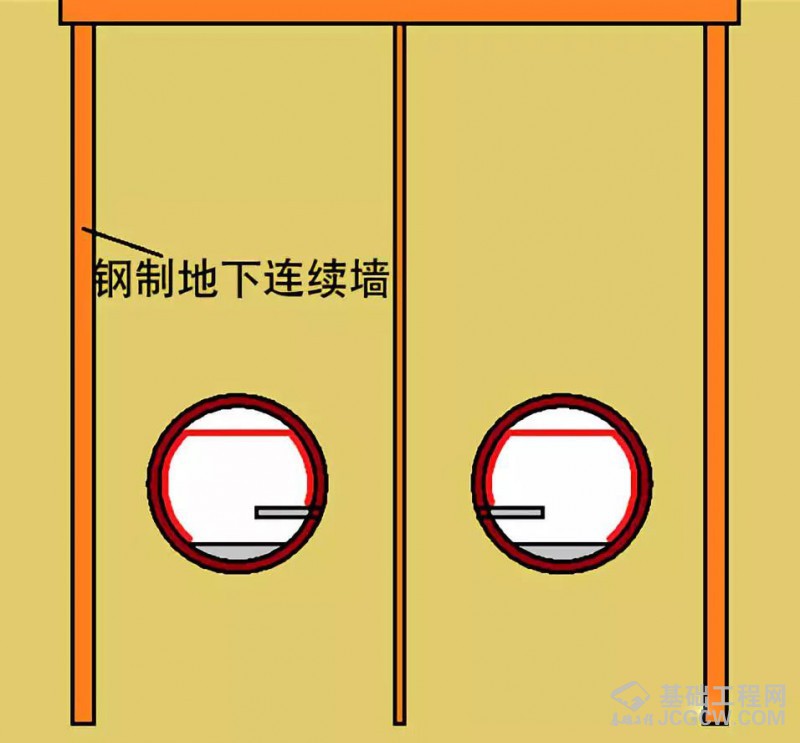 在挖掘过程中,为了防止周边的土砂和地下水流入,自地面打设了地下连续墙。由于运营中盾构隧道处于挖掘区域内,无法设置水平支撑,因此采用了强度较高的钢制地下连续墙。