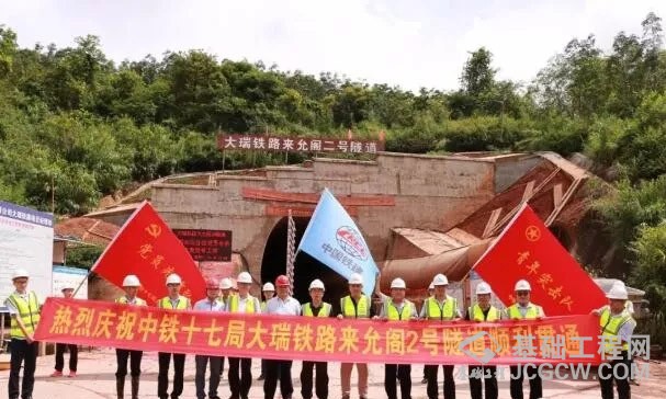 7月28日10点58分,由中铁十七局集团承建的大瑞铁路来允阁2号隧道顺利贯通,这是大瑞铁路德宏段首座贯通的隧道。此前的6月10日,大瑞铁路江顶寺隧道顺利贯通,标志着大瑞铁路建设再次取得新突破。