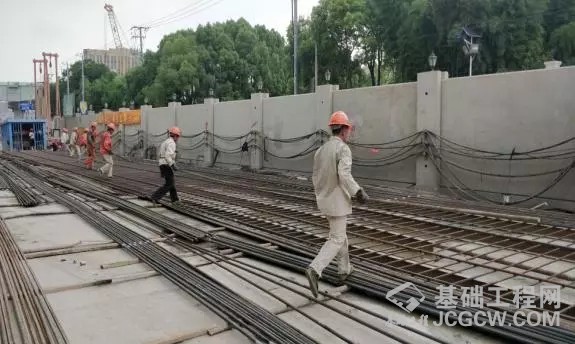 另一方面,项经部合理安排管线搬迁的施工进度,仅用不到1个月时间顺利完成了金丰路涵桥管线搬迁事宜,确保2号基坑地下连续墙的有序进行。