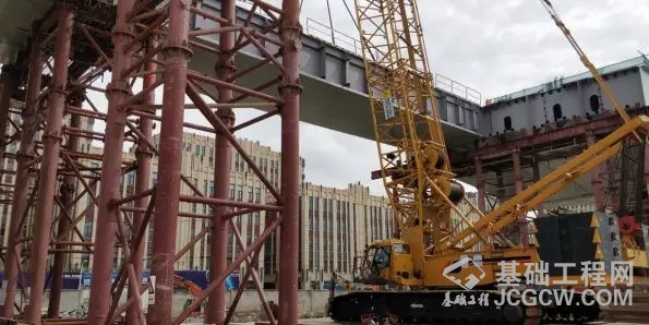 北青公路S26高架工程施工区域正处于4号基坑(分叉段)及5、6号基坑(上下层匝道)顶板上架梁施工,为了确保我方主体结构的稳定及成品保护,在其施工期间,我方每日进行监督,在履带吊施工相应位置基坑下方进行测量布点及监测。同时,根据业主方要求,我项经部不断调整计划进度,及时让出了施工作业面,为实现S26高架九月底前通车争取了宝贵的时间。