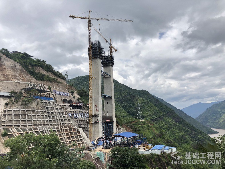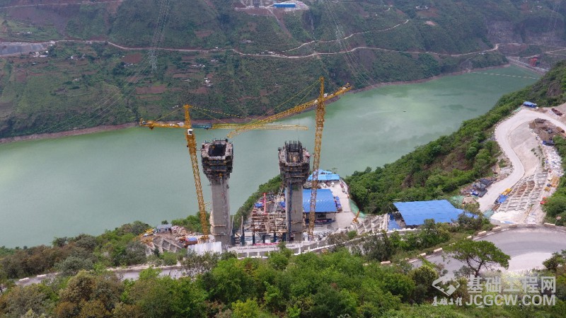 金安金沙江大桥为华丽高速公路重点控制性工程,该桥横跨金沙江,桥面与谷底约335米,主桥采用1386米单跨双铰板桁结合式钢桁梁悬索桥。丽江岸主塔施工共分42个节段,高186米,由中交第二航务工程局负责施工。