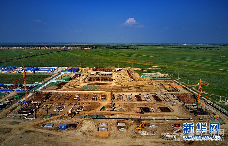 据介绍,该工程将在河北省康保县、张北县、丰宁满族自治县建设三个±500千伏送端柔性直流换流站,在北京建设±500千伏受端柔性直流换流站,直流送电线路途径河北、北京,线路长度666千米。工程建成投运后,将充分发挥柔性直流输电在新能源开发、利用上的技术优势,满足张承(张家口、承德)地区可再生能源可靠送出,助力低碳绿色冬奥。图为国网张北可再生能源±500千伏柔性直流电网示范工程张北换流站建设工地(8月4日无人机拍摄)。