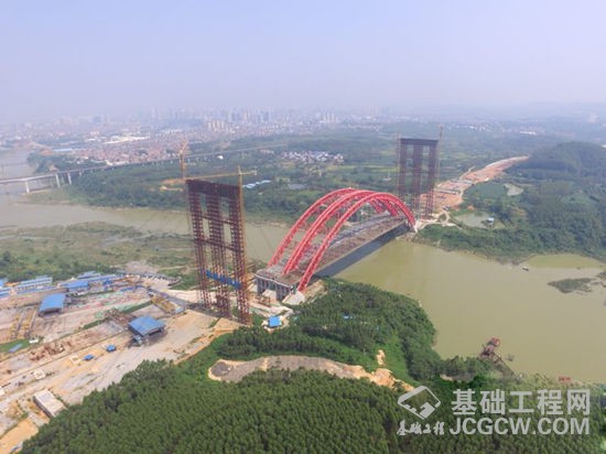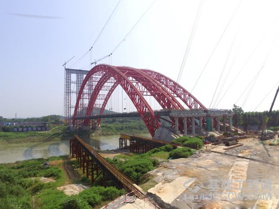 广西路桥工程集团有限公司总工程师韩玉介绍说,马滩红水河特大桥,为主桥跨径336米、总长553米的中承式钢管混凝土拱桥。它是柳南高速的控制性工程,也是目前中国国内在建高速公路桥面最宽、用钢量最大的钢管混凝土拱桥。大桥分左右两幅桥,全宽达59.2米,主体钢结构约14500吨。马滩红水河特大桥跨径大,技术难度高,工程量大,风险高。