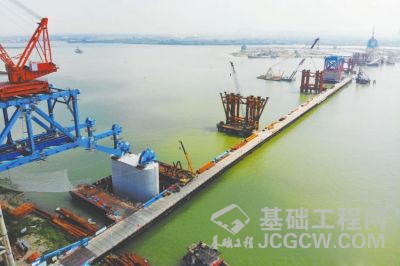 南沙港铁路洪奇沥特大桥桩基工程已完成近7成