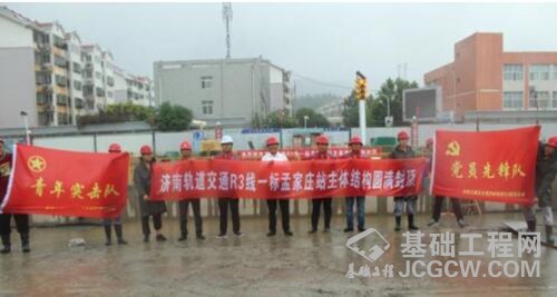 8月14日,随着济南R3线孟家庄站最后一块顶板混凝土浇筑完成,车站主体结构圆满完成封顶,这是R3线一期第9个完成主体结构封顶的车站。