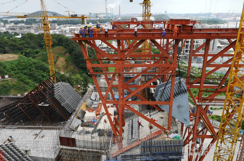 8月14日上午,随着首件261.5吨的散索鞍精准安装在连淮扬镇铁路五峰山长江大桥南锚碇上,标志着五峰山长江大桥进入上部结构施工。此次安装的是南锚碇下游侧散索鞍鞍体,也是目前世界最重、体积最大的散索鞍。
