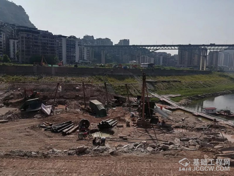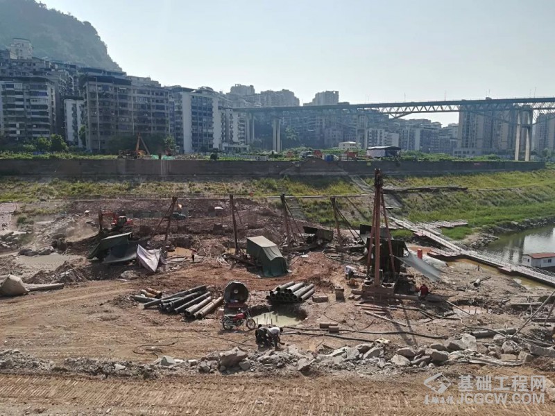 施工方负责人告诉记者,为了在秋季三峡蓄水前完成桥墩柱、盖梁部分施工,工地24小时作业抢工期,完成了筑岛、施工便道施工、预制梁场平场、冲孔等。目前,大桥已经完成16根桩的浇筑,另外12根桩正在冲击成孔,预计本周内可完成冲孔。