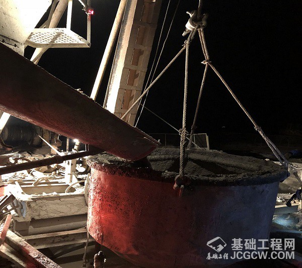 核心提示:城开高速公路雪宝山互通B匝道桥首根钻孔桩基浇筑场景。 8月18日,经过连续8小时鏖战,城开高速公路雪宝山互通B匝道桥首根钻孔