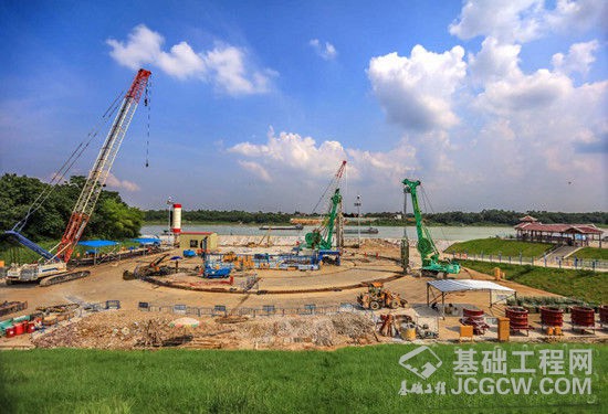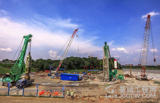 据了解,该项目地连墙底板直径54.6米,厚6.0米,需连续浇筑混凝土14041m立方米。地连墙施工划分为Ⅰ期、 Ⅱ期槽两类,各20段,共计40段,其中Ⅰ期槽槽段长度6.942迷,Ⅱ期槽槽段长度2.8米。