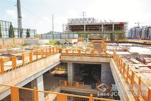 图为:地铁8号线三期车站施工现场