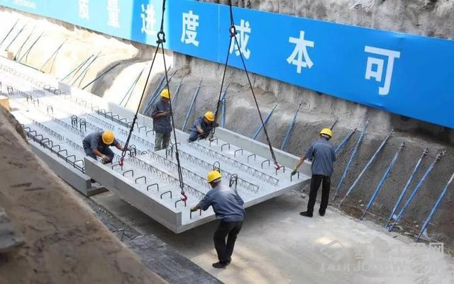 此次装配式地下综合管廊采用工厂集中预制,首批装配式综合管廊主要包括管廊本体结构中的底板、墙板、顶板,在工厂完成标准化加工生产,直接运到施工现场,经过专业培训的产业工人完成吊装、安装、现场二次浇筑混凝土等施工流程。