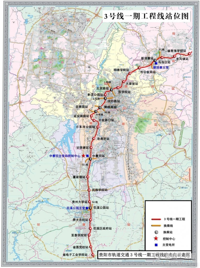 此前,贵阳市城市轨道交通有限公司网发布有关地铁3号线消息显示,3号线一期全长约43公里,线路起于花溪区桐木岭站,止于乌当区洛湾站,共设车站29座,车辆最高时速100公里/小时。共设置28个站点,所有站点皆为地下站。项目最大站间距为2.997km,最小站间距为0.5公里,其中设置7个换乘站,分别是与S1号线换乘的新添寨站和中曹司站、与1号线换乘的北京路站、与2号线换乘的浣纱路站、与S3号线换乘的狮峰路站、与4号线换乘的花果园站、与S4号线换乘的花溪公园站。项目设车辆段和停车场各1座,主变电所3座。