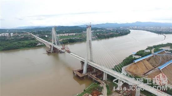 国内首座大跨度高铁斜拉桥成功合龙